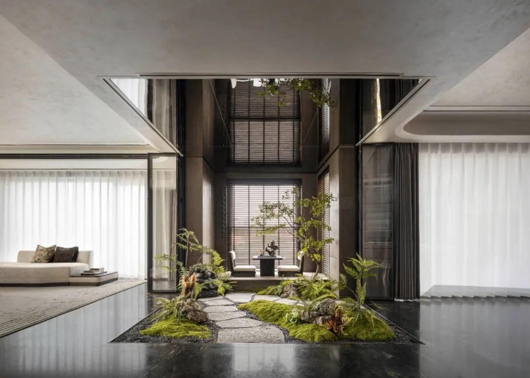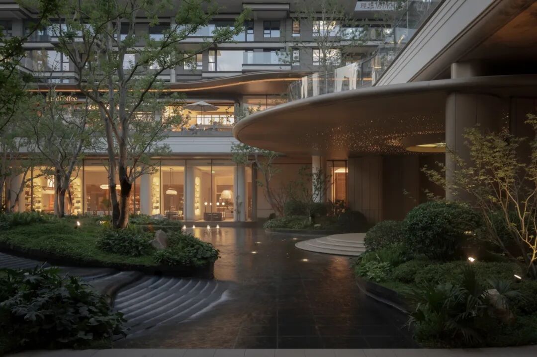 内外交融的会所式庭院,下沉式艺术社交空间,拓宽生活的边界,形成流动的无界会客厅。
