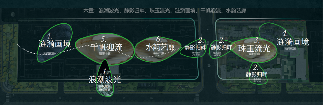 设计从灞水波岸、浪花涟漪的意境中提取设计灵感,打造“五重潮奢生活场景”,精心布局“一轴五境”归家场景,五大画境场景、十六米长静水面宽、百米礼序轴线,重构人与自然的亲密关系,构建全龄精致"森活"场。