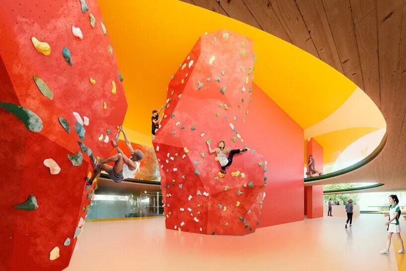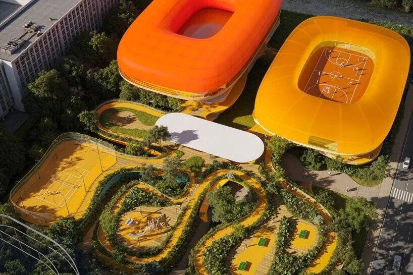 西班牙建筑工作室Selgascano设计的泗泾镇体育中心在上海郊区获得了二等奖,被认为是一个可持续的、人性化的地标性建筑。该项目规划在交通路线和绿色走廊之间,强调可达性和积极的机动性,将慢跑道、自行车道和附近的公园连接到一个更广泛的健康公共空间网络中。
