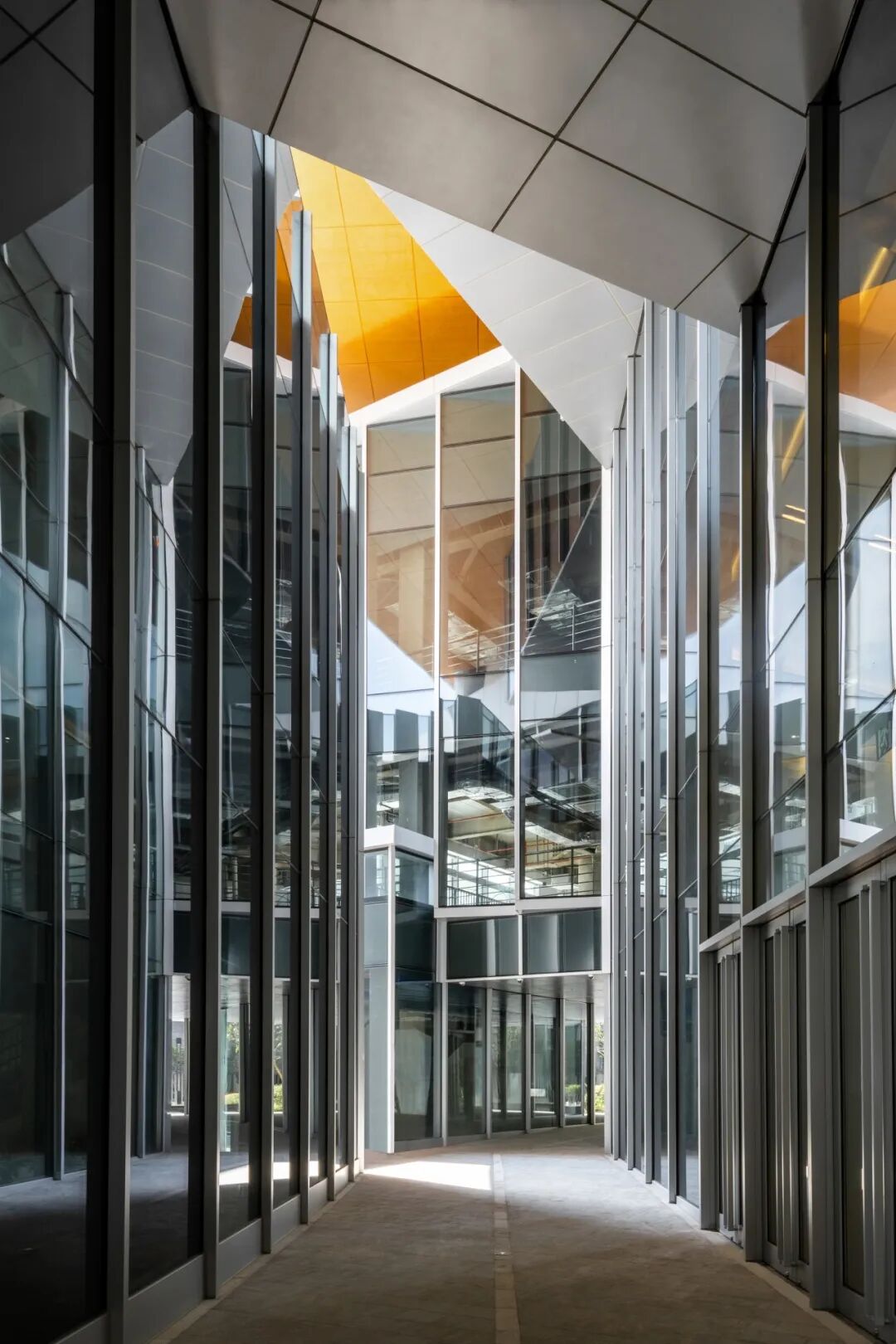 ◎ 错动堆叠的体块在结构柱中穿插
