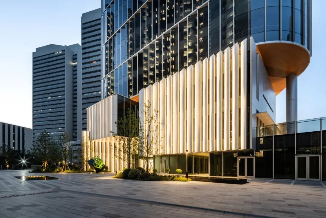 办公楼低区的设计是促进协同社区感的关键因素。设计通过沿街公共空间的开放吸引人流并服务社区,兼顾了外向城市属性和内向私属空间。