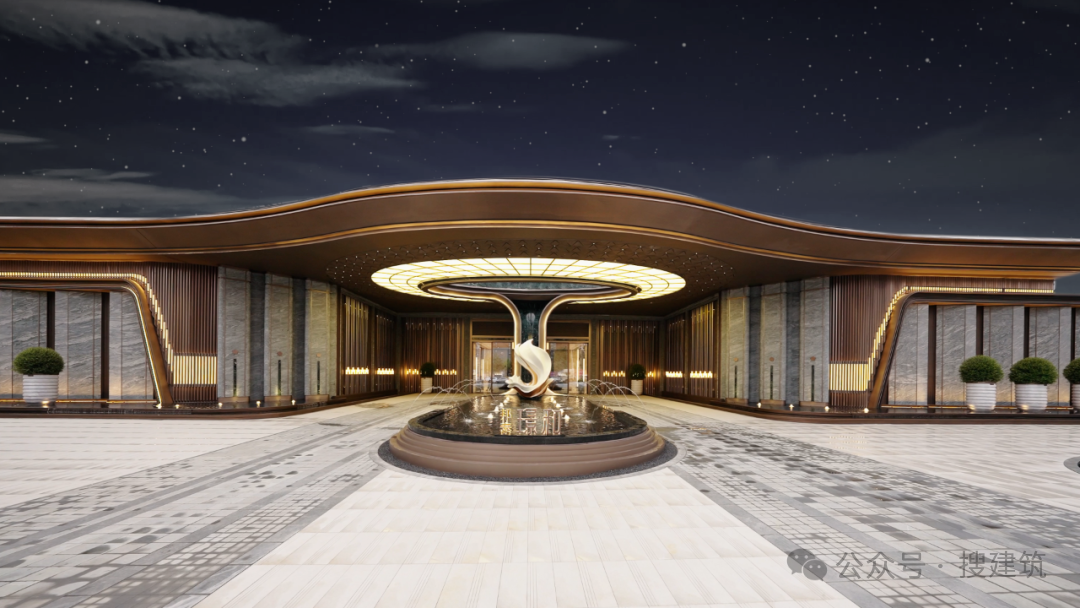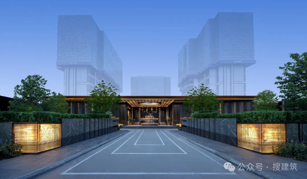 小区主入口,是约92米的星级酒店环绕式落客门头,气场全开,堪称是尺度与气度的“代名词”。