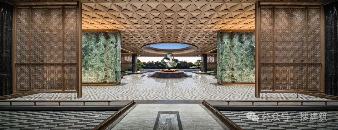▲几何穹顶与镜面水景相应,演绎四水归堂的仪式感 ©中交·九宸