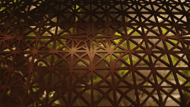 ▲带有八芒星IP的香槟金中式金属格栅©中交·九宸