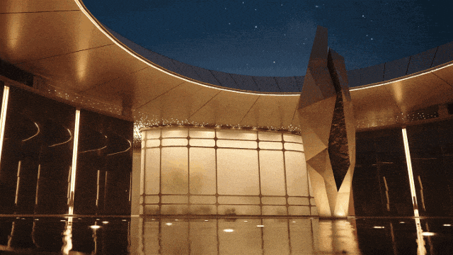 ▲渐变星空顶映照鎏金玻璃宛若星河 ©中交·九宸