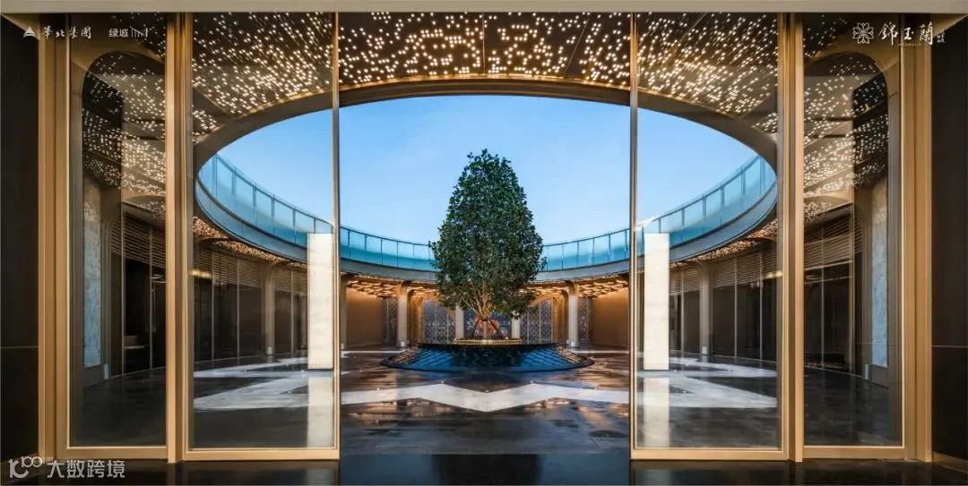 一进迎门启序,宽约32米、高约7.5米的礼序门庭,以海棠纹印鎏金铺陈,打造滤境式人文画境;