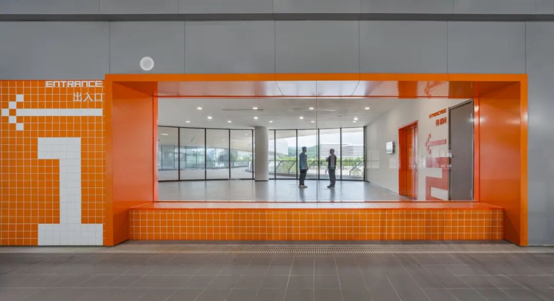 墙面与功能空间则采用彩色金属板、氟碳涂层与穿孔构件进行组合,通过色块划分与局部撞色设计引入活力,丰富使用者的视觉体验。在保证空间统一感的同时,设计试图通过材质与构造的策略,构建一个兼具功能性与识别性的日常体育空间。