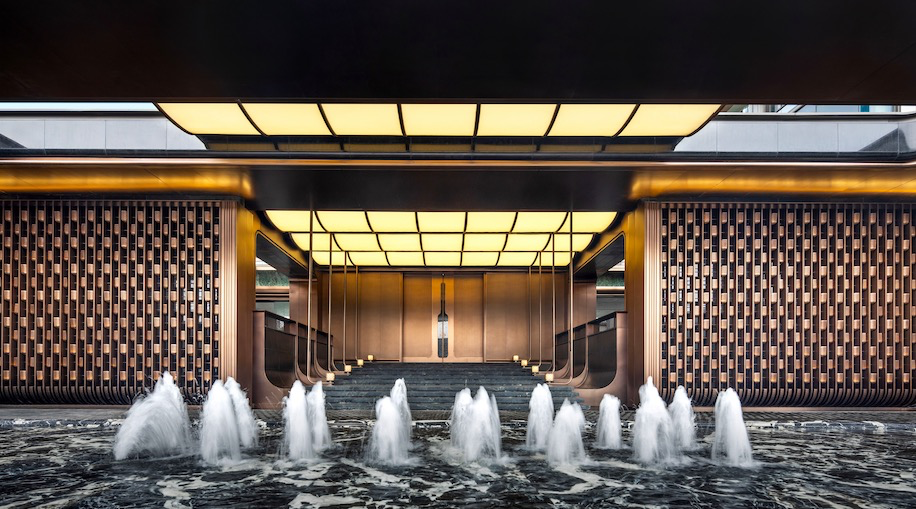 设计对罗马万神殿进行现代转译,打造了这个极具对称仪式感的“中央车站”:为了打造出神圣的殿堂感,两根多立克式柱对称而立,顶部是巧妙的宫殿式圆弧穹顶设计,引渡天空光芒的穹顶柔光如银河倾泻,这是戏水池的波光,两相结合,透着灵动的设计感。