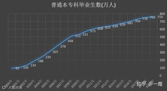 历年高校毕业生与研究生毕业人数(来源:知乎@一麾)
