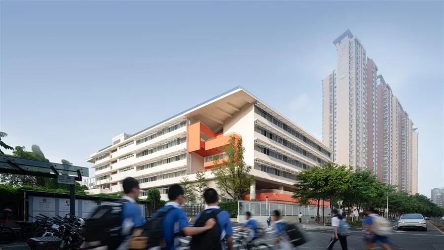 Xinghe campus, a high-quality campus project prioritized by the Longgang District Construction Bureau of Shenzhen, resolves spatial challenges of high-density sites through systematic design strategies. The project pioneers innovative spatial paradigms to transform fundamental teaching models, while achieving green and low-carbon campus goals through architectural innovation.
