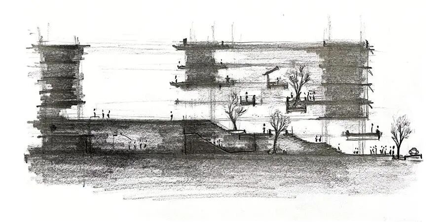 3. 3D Permeability. Colorful aerial walkways weave through the campus, creating multi-layered spatial connections. Suspended tree plantings bring nature within 10-minute breaks, while extended bridges serve as vertical exercise platforms. Strategically carved voids allow light and wind to permeate the dense structure, improving microclimate comfort and offering city-view perspectives that connect students to urban growth. This "Walled House "as a giant classroom where spatial cohesion stimulates peer-to-peer learning.