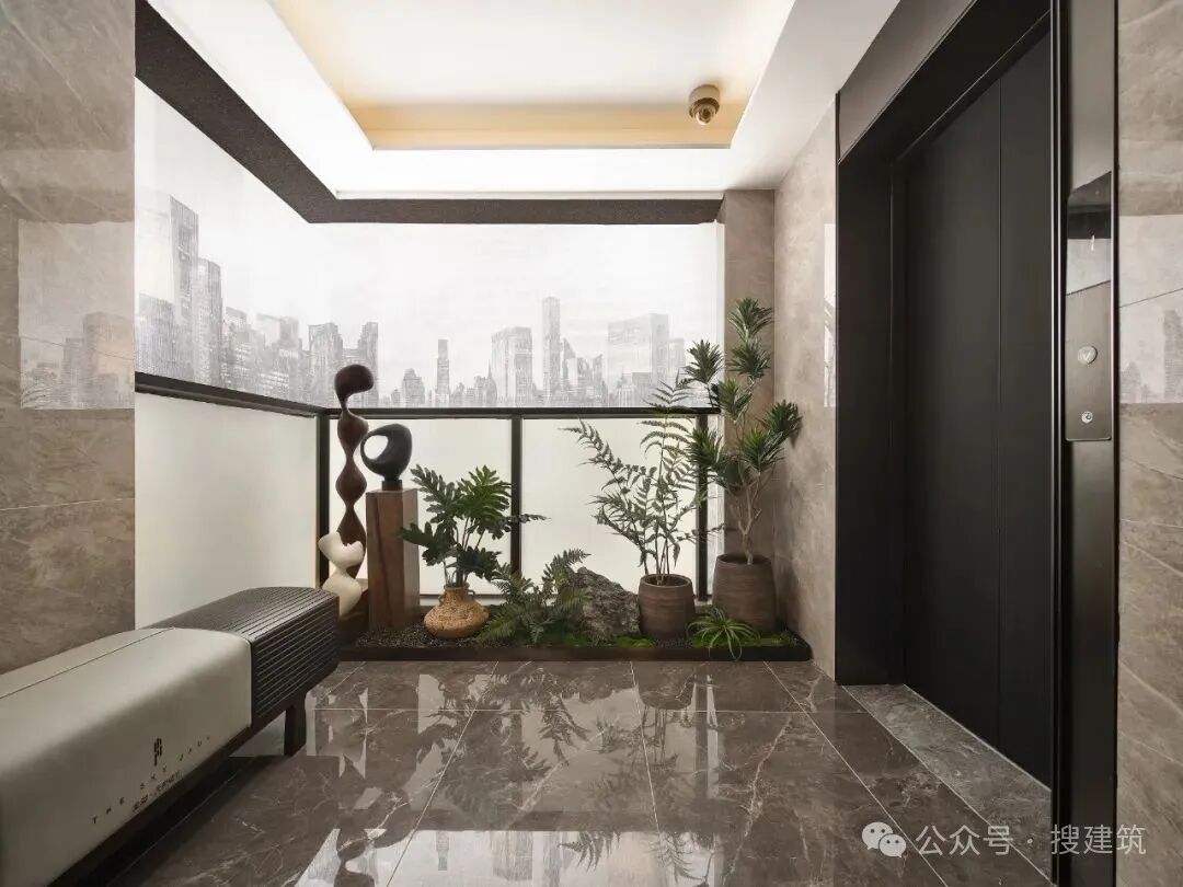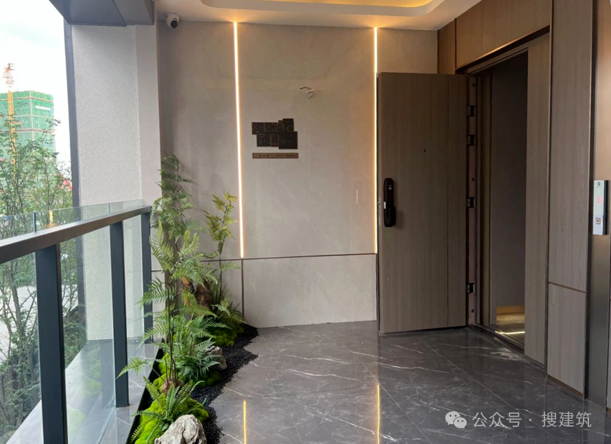 5、场景感更多,更强,全电梯明厅作为一个充满情景化的空间,恰好能够成为一个极具仪式感的入户花园,近乎满足大平层对于“空中花园”的需求