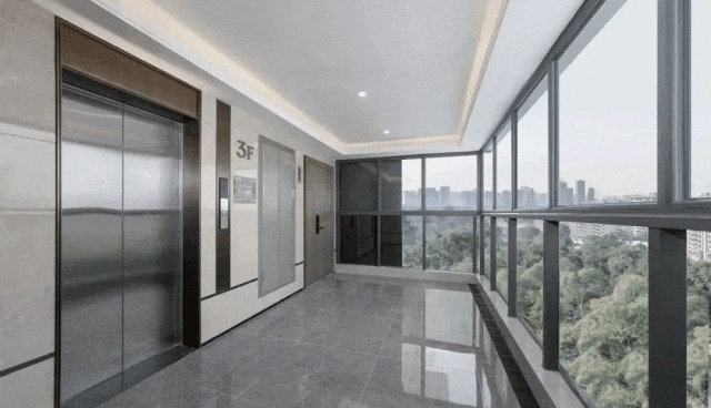 1、区别传统密闭空间,全明电梯厅实现独立采光、自然通风