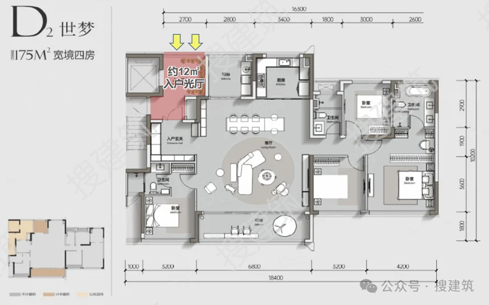 比如成都中交·天府九章建面约175㎡户型,享约12㎡单面采光入户前厅。