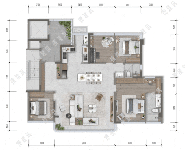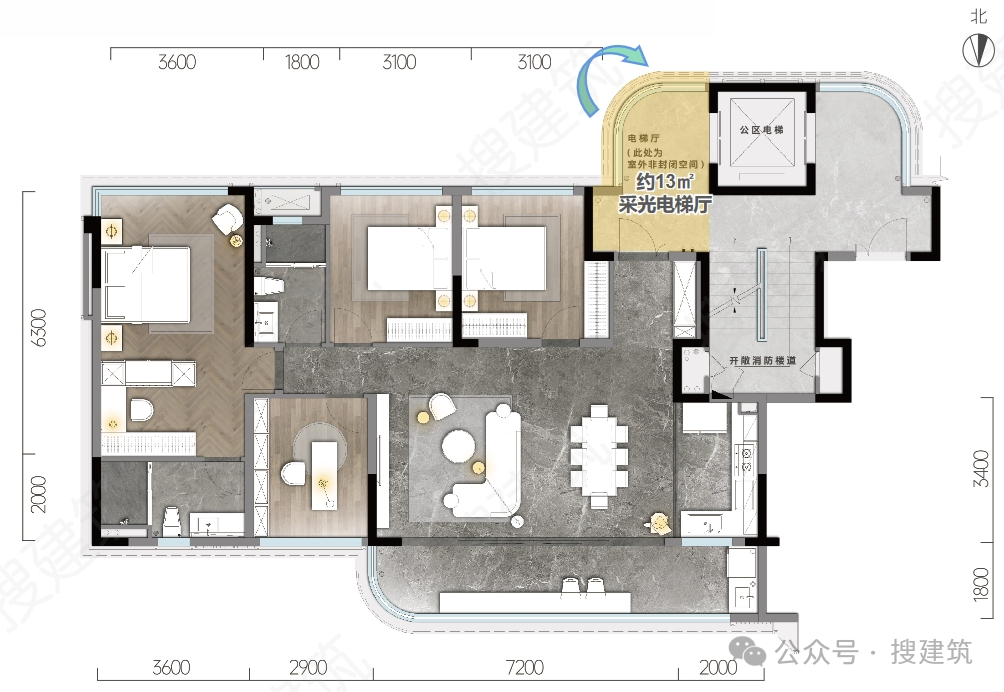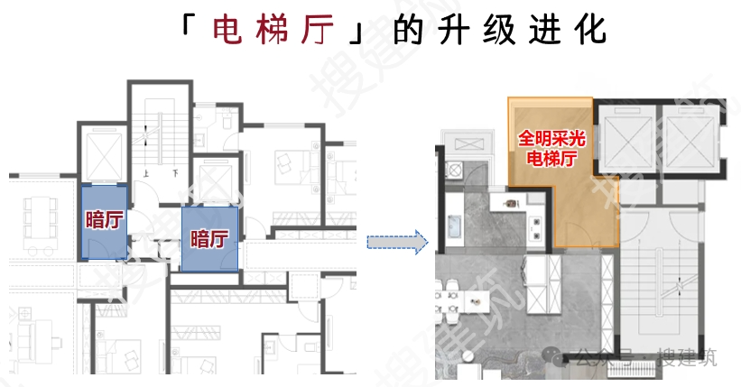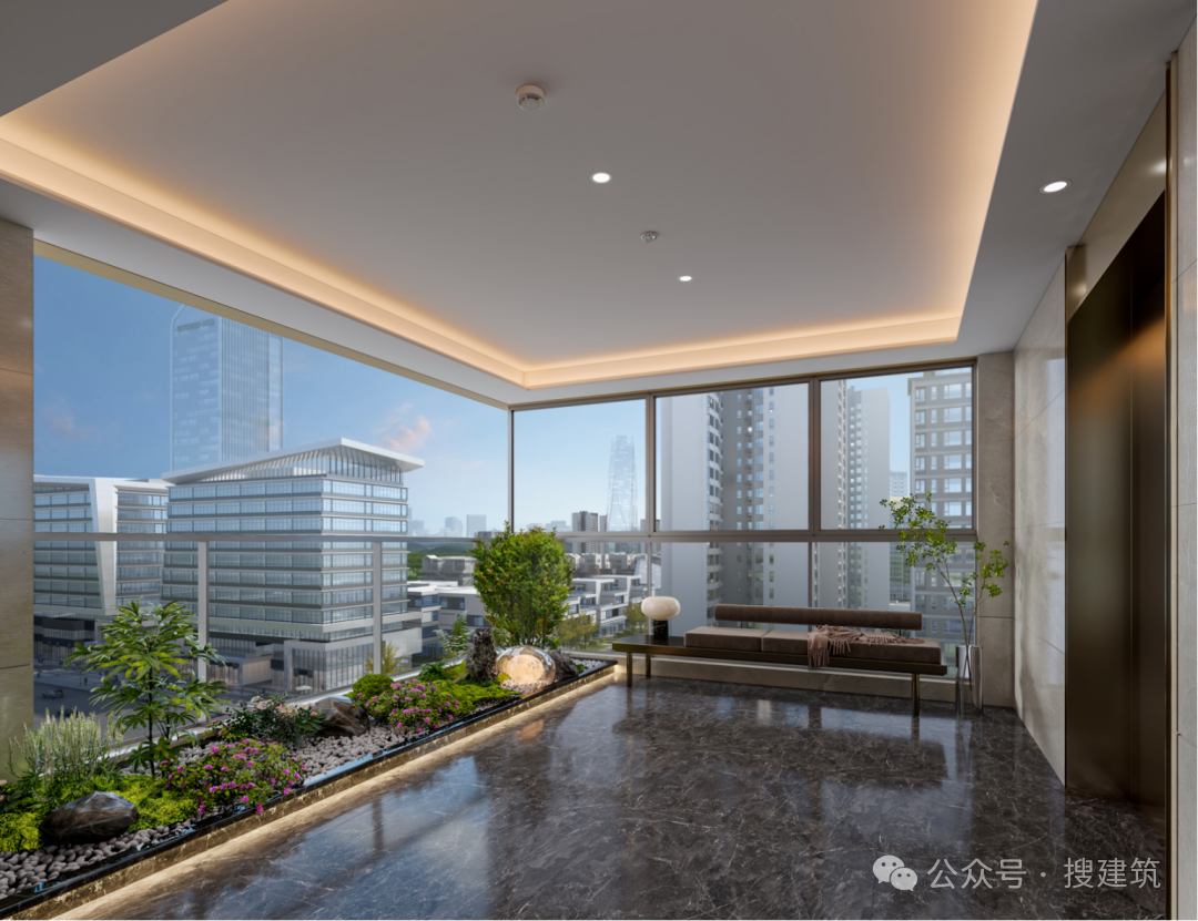 今天搜建筑和大家一起来聊下户型电梯厅的进化趋势——花园式全明采光电梯厅。