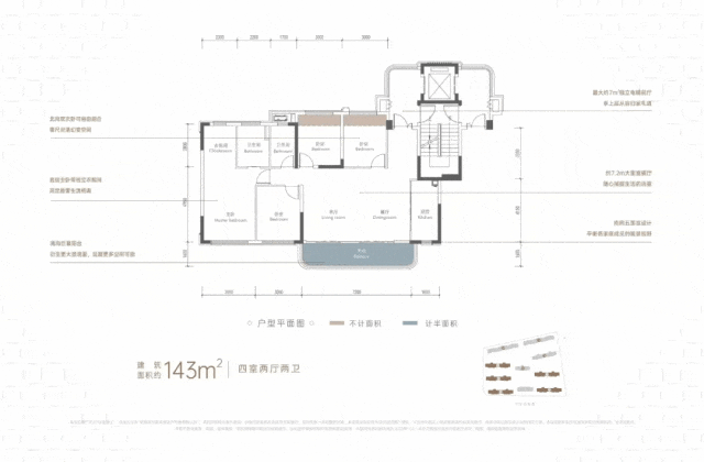 成都香港置地·天湖翠林建面约143㎡户型示意图