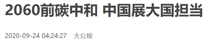 2020年9月在联合国大会上,中国政府毅然承诺——中国将在2060年实现碳中和!