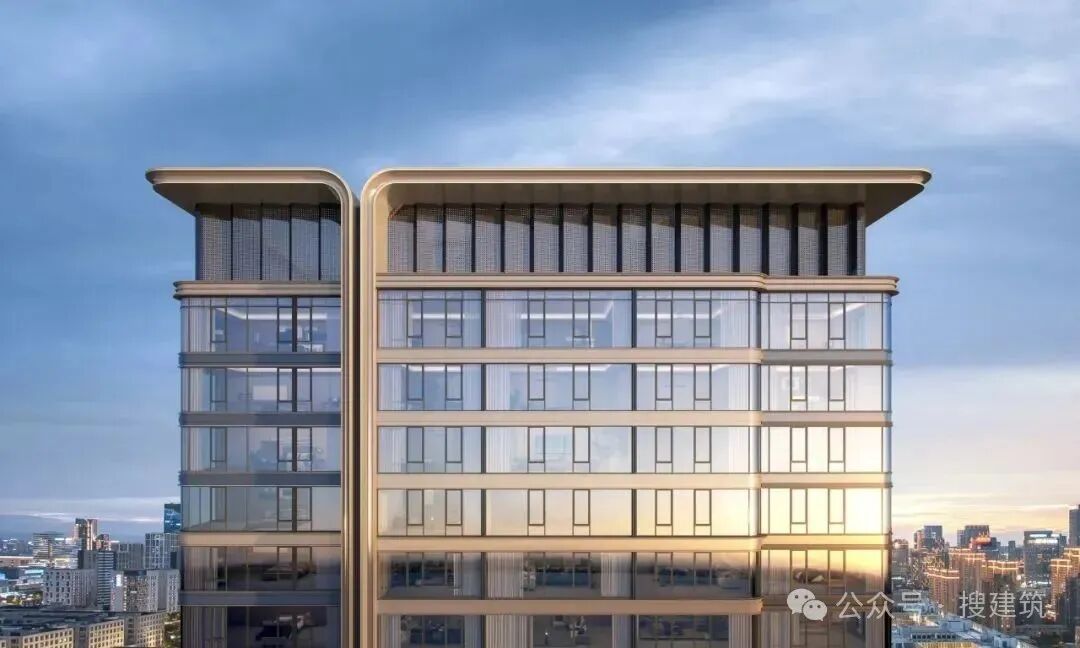 建筑立面的设计采用造价高、质感十足的“铜色金属板+浅色折叠陶板”,精心雕琢出协调统一的建筑形态,细致勾勒出建筑主体的挺拔姿态和稳重典雅的。