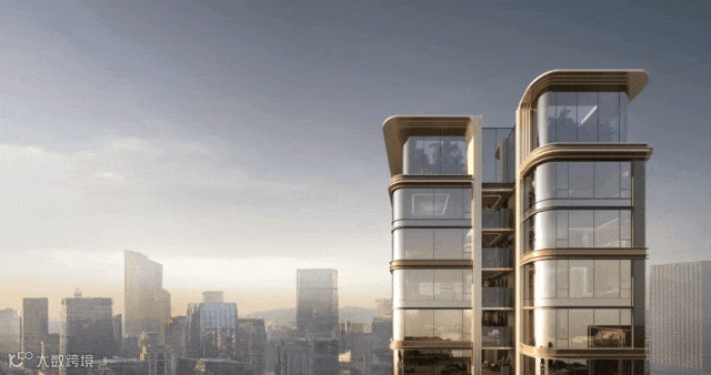 立面是平面的延伸,通过平面模数划分形体关系,并控制建筑的体型,主色调是恰到好处的雅致感,竖向与横向线条以铝板作为主要用材,转角弧形玻璃,增加立面挺拔感及韵律感,顶部采用金属拉伸网提升项目标志性,整体显现出艺术感、自然度、静奢性。