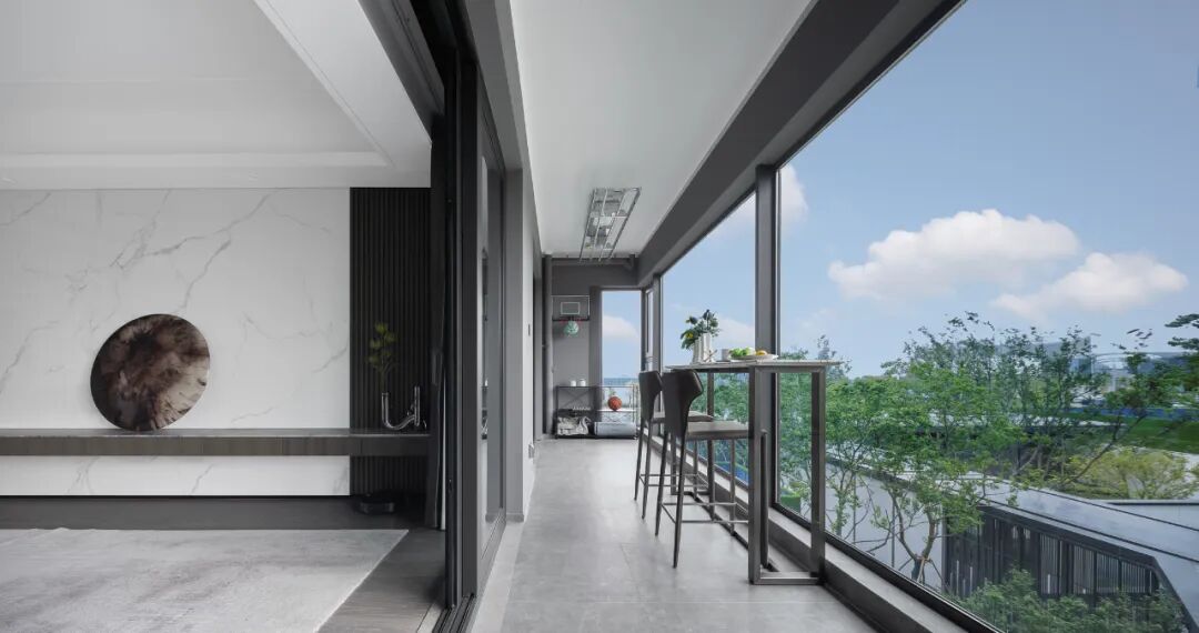 双阳台的打造,南向的生活阳台可以满足日常的晾晒,侧面的景观阳台则可以作为活动空间承载更多的空间功能。