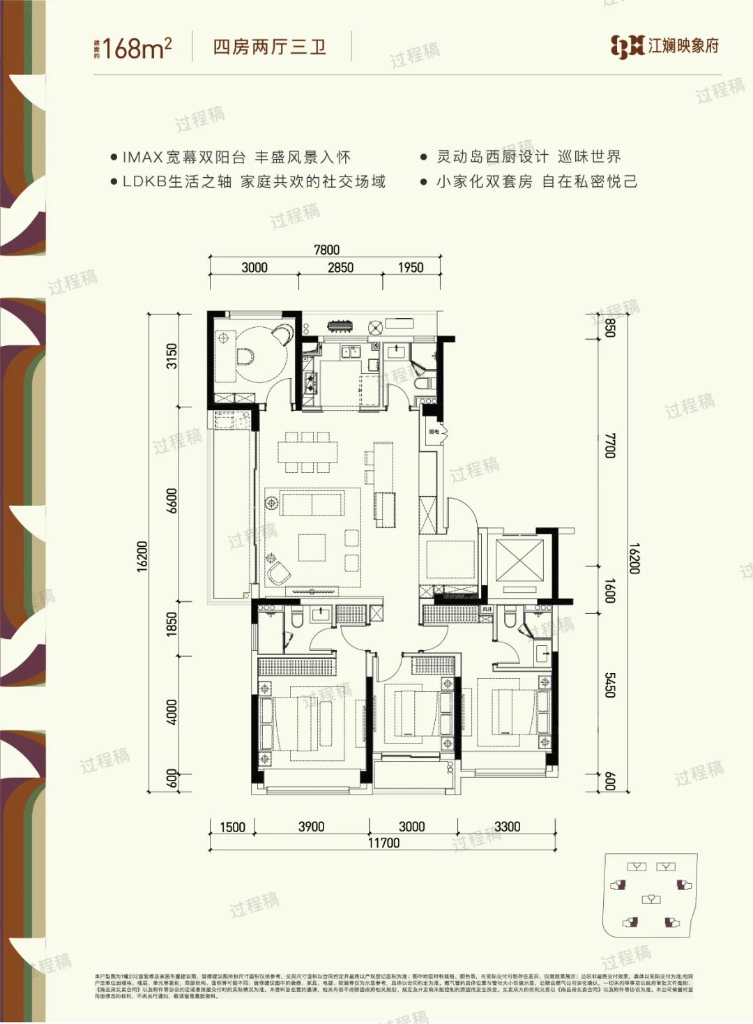 200m²以下超能打的豪宅——宁波宁光府,建面约178m²四房两厅三卫,南向双套房,户型方正。