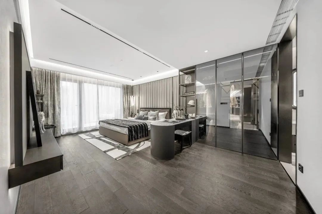 约30平的豪华主卧套,开间达到约4米,奢华卫浴区约8平;次主卧设计,面宽也达到了约3.7米,相当于市面140平的主卧大小。
