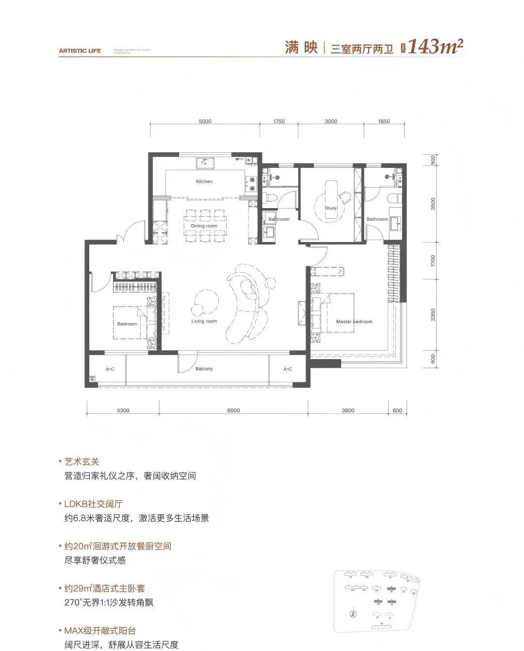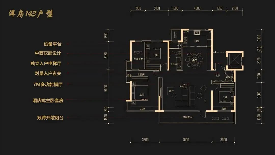 建筑面积约143平米户型:扁平化设计塑造13.8米南向总面宽,7米巨幕式客厅打造家庭核心社交场域。独立入户电梯厅延伸私密空间,16平米全景阳台串联客厅与次卧,以“全面屏采光”重构居住尺度,让每一寸空间承载生活的自由与诗意。