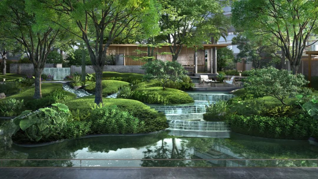 以“立体森系”为核心设计理念,结合双中心围合大花园,实现推窗见景的“城市立体森系”人居生活。