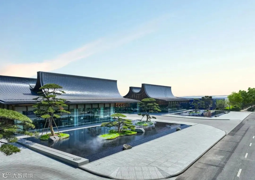 三进香池墨池以曲水流觞营造"身与云轻"的禅意空间,层次丰富的景观植被,赋予空间灵动的视觉韵律;