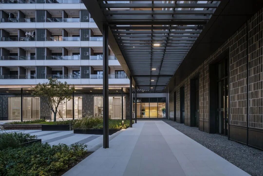 项目位于上海杨浦新江湾城,是上海城投置地开发的第一批全租赁住宅。几十年的城市居住革命,改变了城市住区的风貌,传统街巷、里弄、杂院已经慢慢成为历史,我们的生活品质似乎提升很多了,但同时,我们的居住空间却变的单一同质,近乎千篇一律。以销售为目的房产开发和负面引导彻底改变了人们对住区和生活的认知。出于安全和所谓的品质感,封闭式小区已经成为我们新建住区的标准形式,住区和城市的链接,只有小区的门卫和大门。面对一个销售型的住宅,人们对其的态度是非常保守和顽固的,住区开放对城市的边界,或是不同类型的居民混住,是一个极大的挑战。