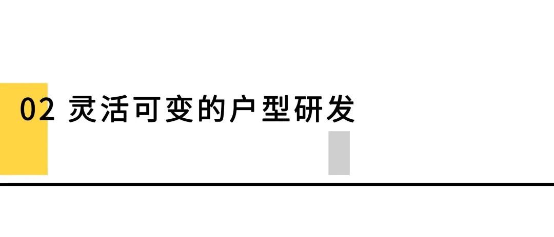 租赁住宅与商品住宅、保障房住宅最大的不同点,是建设单位需要全周期的运营管理。我们既要考虑中短期相对精准的定位,同时要重视长期可持续运营的灵活性。充分考虑项目定位和客群需求,我们将产品分为一室、二室、三室三种基本类型,面积最小30㎡,最大90㎡以上,共计五种户型。同时充分考虑产品的灵活转化和可变性,可以做到同一户型不同的使用模式,小户型的拼合使用等功能。在50年的建筑使用周期内,能够适时调整户型产品来满足市场需求。