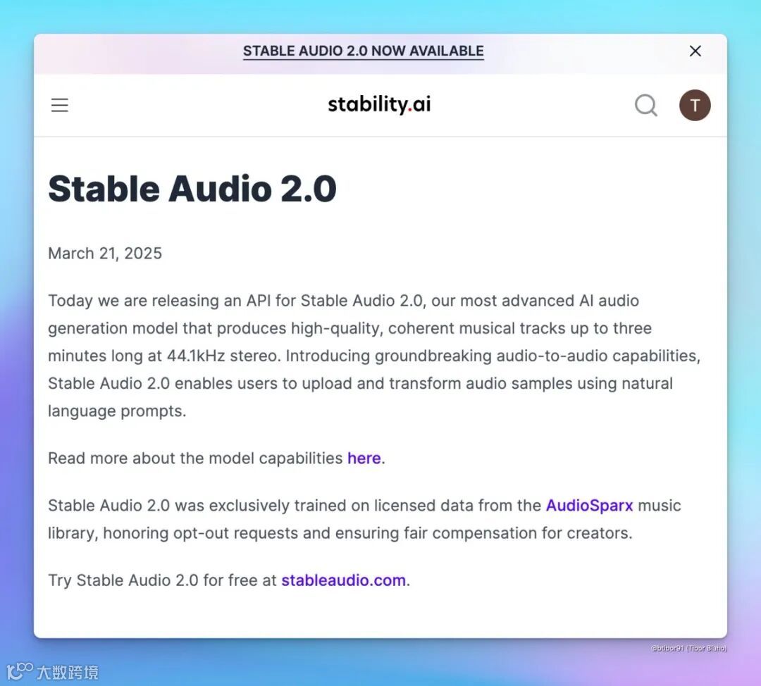 Stability AI是一家专注于人工智能技术的公司,其在图像生成领域的Stable Diffusion模型已经广受好评。此次发布的Stable Audio 2.0进一步扩展了其产品线,为音乐制作、音效设计和音频处理等领域提供了强大的工具。