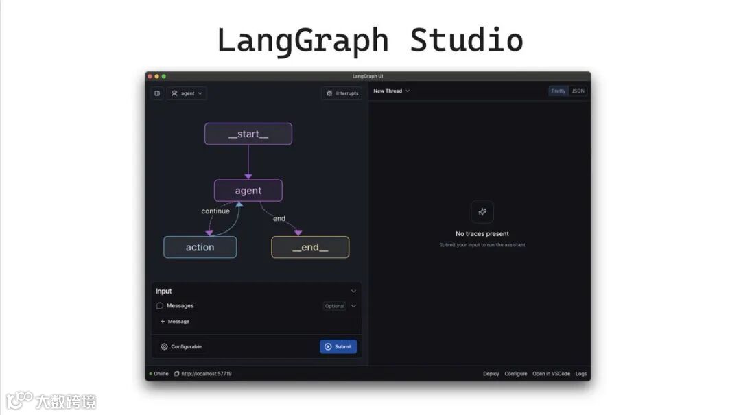 LangGraph Studio是一款专门用于可视化和调试LangGraph代理的集成开发环境(IDE)。它为开发者提供了强大的工具,以更直观地理解和优化他们的工作。Studio的主要功能包括代码高亮、实时反馈以及与LangGraph/LangSmith生态系统的无缝集成。