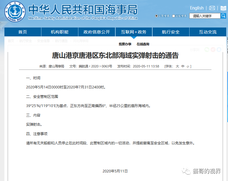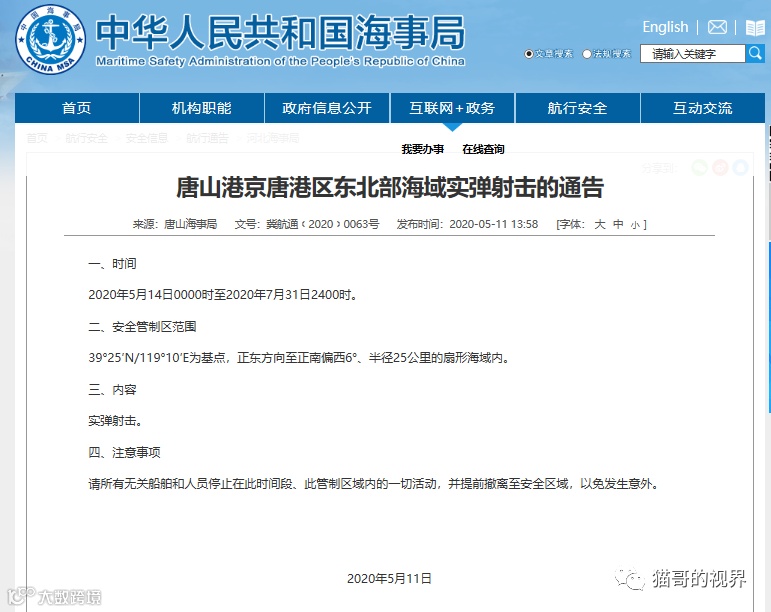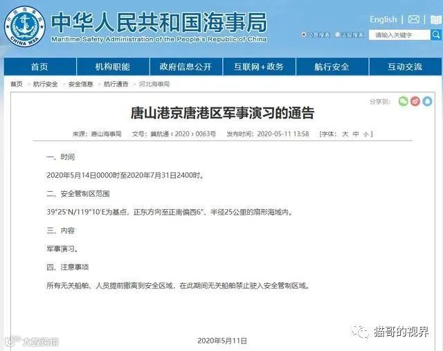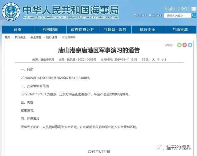 但是唐山港海事局发布的通告与国家海事局又有点区别