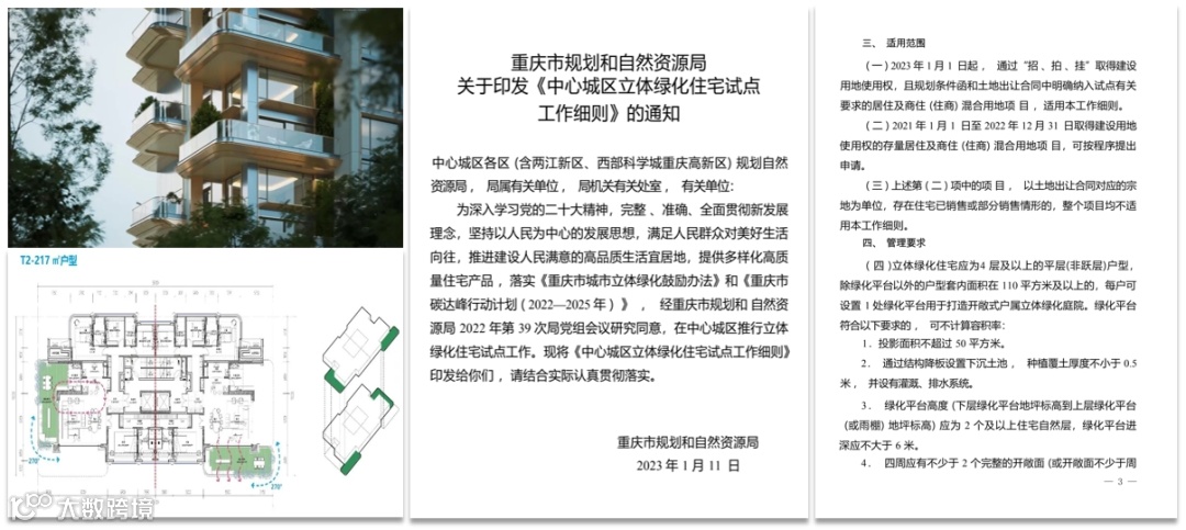 2023年7月,重庆发布《中心城区立体绿化住宅试点工作细则》