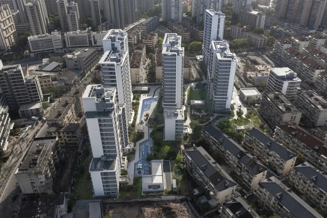 项目总占地约2.4万平方米,周边老居住小区环绕,生活气息浓厚。规划从基地环境切入,结合有机更新的理念,从规划、日照、立面、城市界面等多角度出发,因地制宜,缝合新旧城市肌理,激活街区新空间关系,创造全新的城市立面,助力城市向上生长。