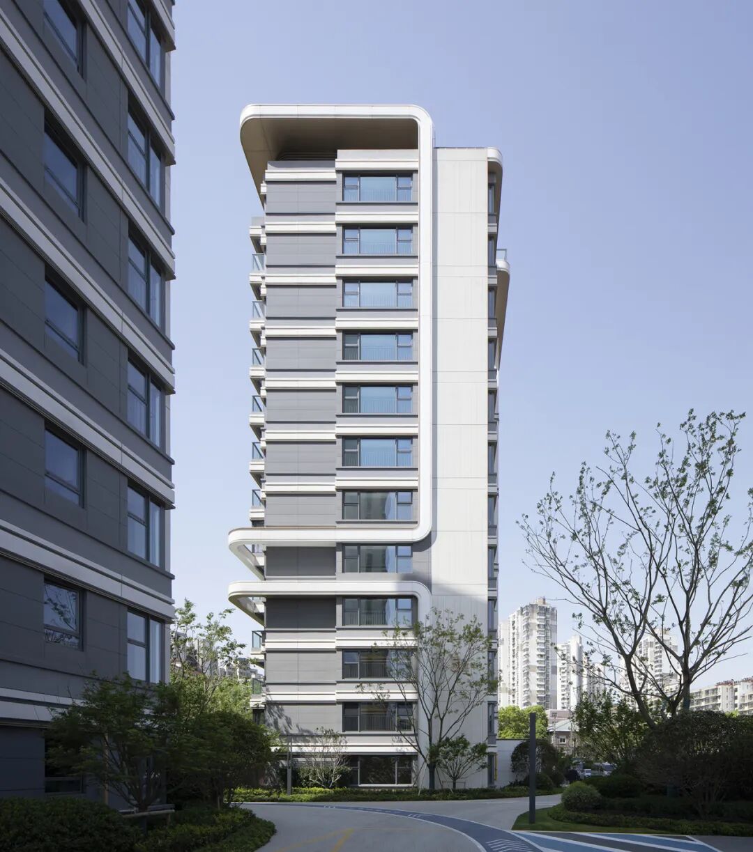 本地块作为老城更新的一部分,承载缝合历史与未来、社区与街区、城市与生活的使命。地块内设置7栋6-20层住宅,采用围合式布局,从城市规划角度,沿革老城区的图底肌理,将社区与城市边界消弭融合,形成有层次的现代建筑整体风貌。