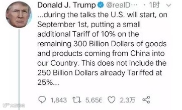 北京时间8月2日凌晨1点30分,川普突然宣布,将从9月1日开始对中国剩余3000亿美元商品加征10%的关税!