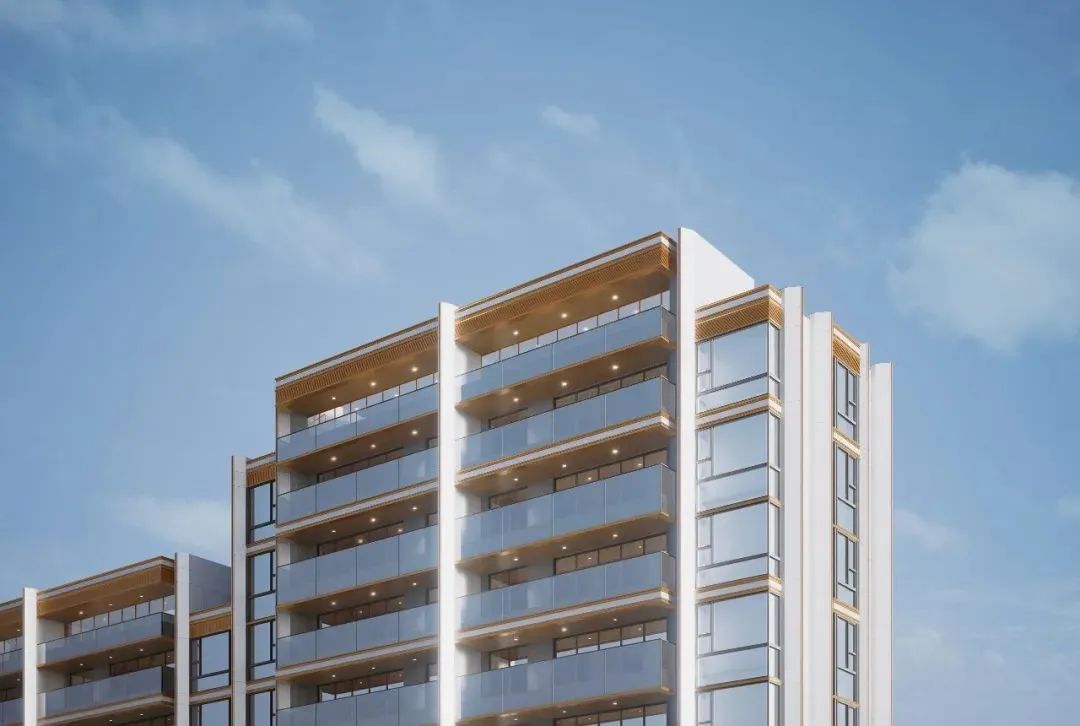 桂月雲翠规划为全洋房产品,汲取独特的津韵基因,将“墅质”的通透、轩敞和层次深植其中,风格上以中式翡翠作为设计灵感,将宽屏视野和立体空中花园的天幕美学融入设计,翡翠般的清透观感融入建筑设计,同时引入东方建筑特有的挑檐元素,结合雲翼的轻盈线条,搭配澄澈的大面积LOW-E玻璃,打造超奢窗墙比。