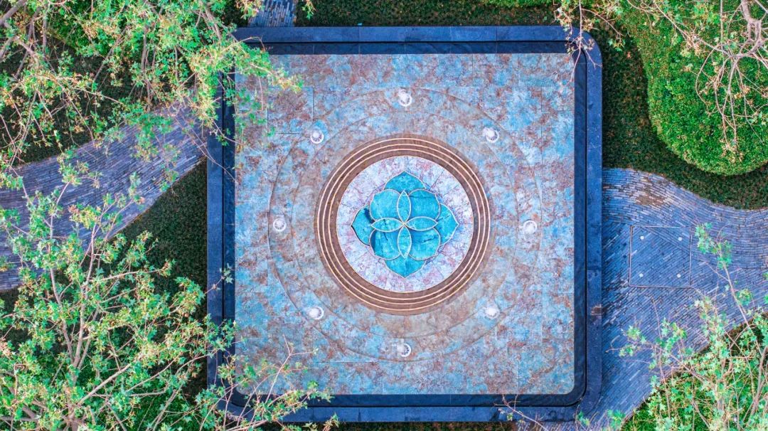 三进香池墨池以曲水流觞营造"身与云轻"的禅意空间,层次丰富的景观植被,赋予空间灵动的视觉韵律;