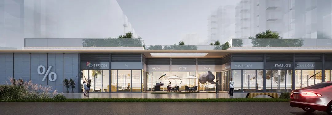 也因此,北侧打造出了宽檐商街,以口袋公园、棠果盒子商业、奢阔门庭组合成超级界面。