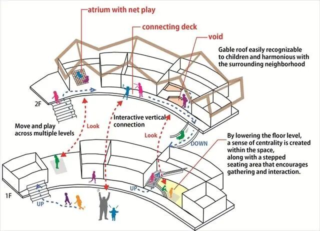 We believe that daycare centers—where children spend considerable time during their early years—play a foundational role in their growth. To support children's inherent needs for physical movement and social interaction, we envisioned architecture itself as a catalyst for play, embedding spatial features that inspire exploration and engagement.