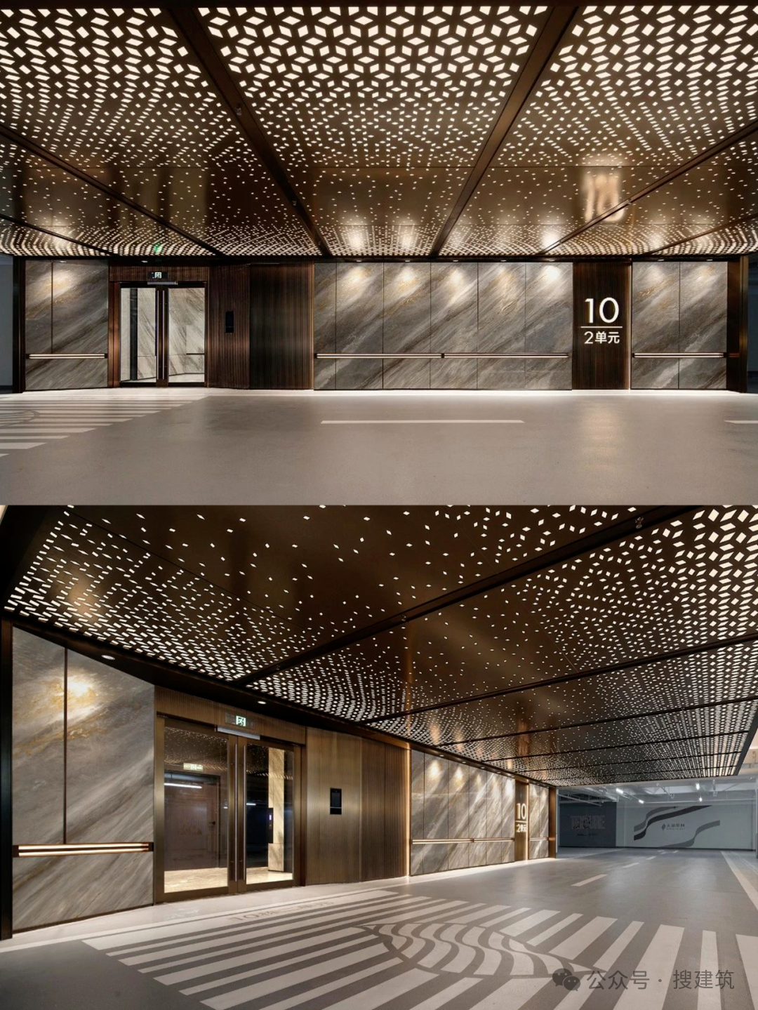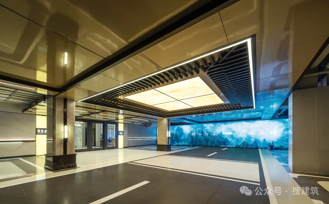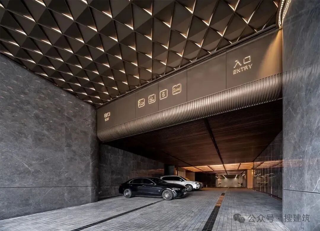 高颜值高品质的地下车库入户大堂现在已经是检验楼盘品质的重要标准,采用高端铝板、石材以及独特的星空顶和灯光格栅等设计手法与材料,可以提升业主地下大堂入户体验感与尊崇感,使得小区整体的品质提升一个水平。