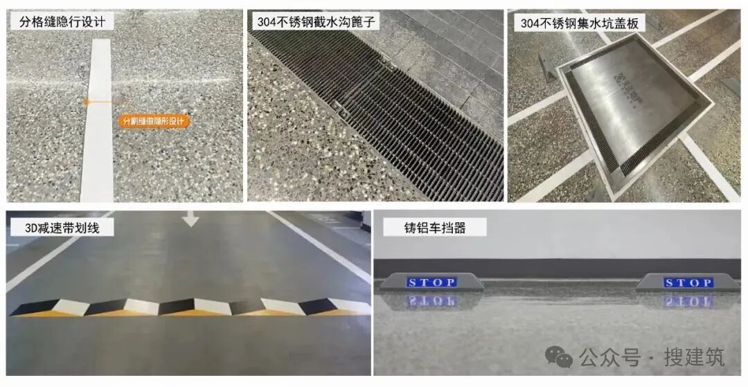 细微之处更见品质。天正地产从业主实际使用维度出发,对车库各处细节进行提升,包括升级铸铝车挡器、升级304不锈钢截水沟篦子、升级304不锈钢集水坑盖板、三维立体减速带设计等,精工细节凸显匠心。