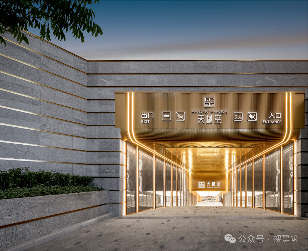 地库出入口:特别注重高度、logo、景观、星空顶、防眩目过渡照明等,增加归家仪式感的同时提升安全性、营造氛围感。
