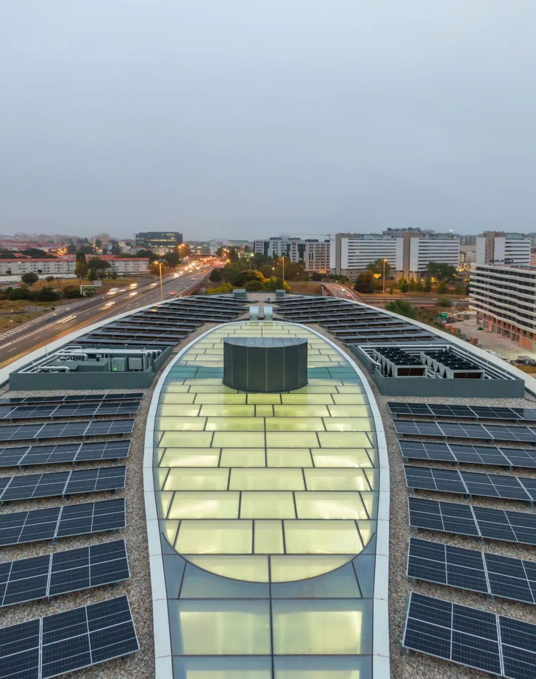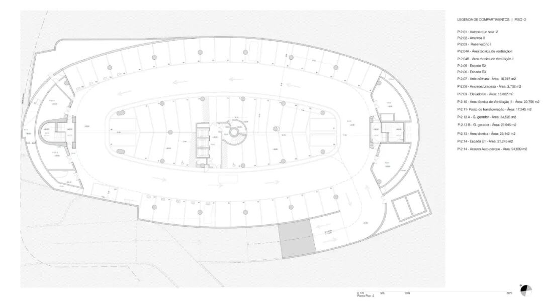 The first great benefit of the project was recovering the urban condition in a place that had degenerated by the obsolescence of the initial industrial vocation. In this new context, the building was designed according to a curvilinear matrix, sweetened to the specificity of the movement and context of the road node. Its horizontality is strongly marked by the shading elements that rise with opposite movements, culminating in an inclined rooftop, which establishes the existence of a mezzanine.
