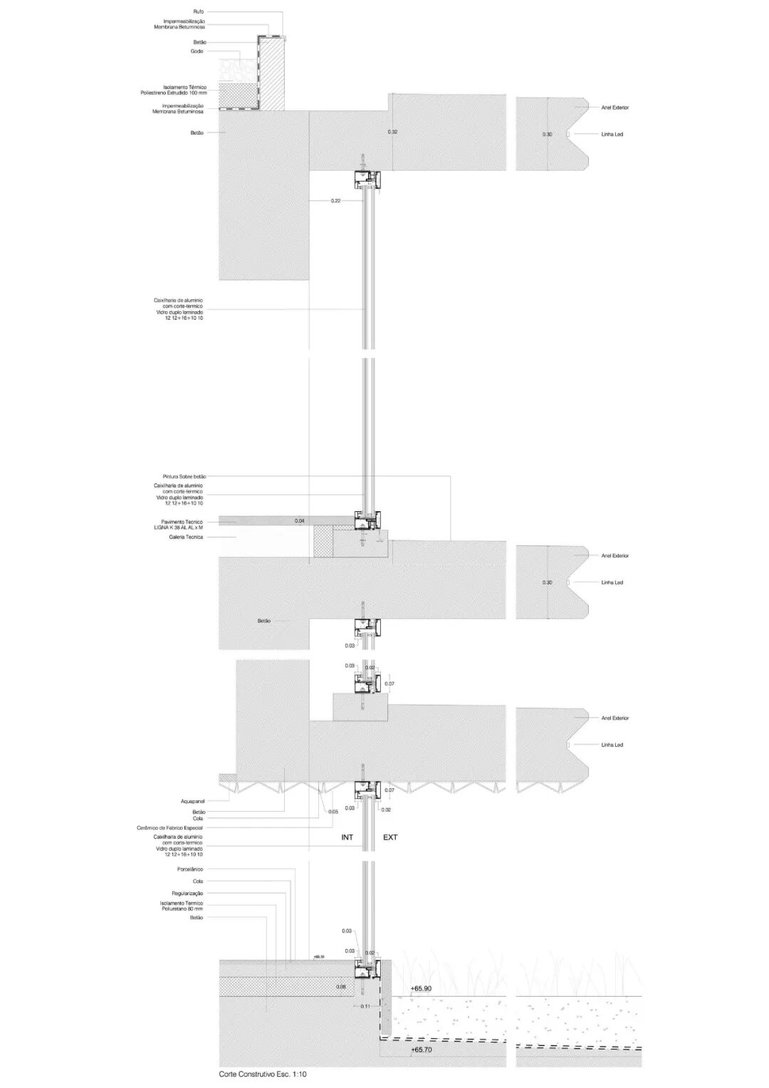The option for a central core, elongated, open, and sheltered, in addition to increasing the capacity for visual interaction between the different floors and in this way, between the various appropriations by the users, aims to increase natural luminosity for the office areas, to achieve the reduction of the use of artificial lighting. An exceptional amount of light is attained through the core because, in reality, it doubles the number of facades. The careful design of this large central skylight has been considered to allow the appropriate thermal and comfort conditions.