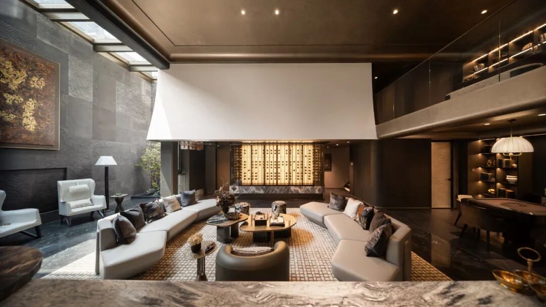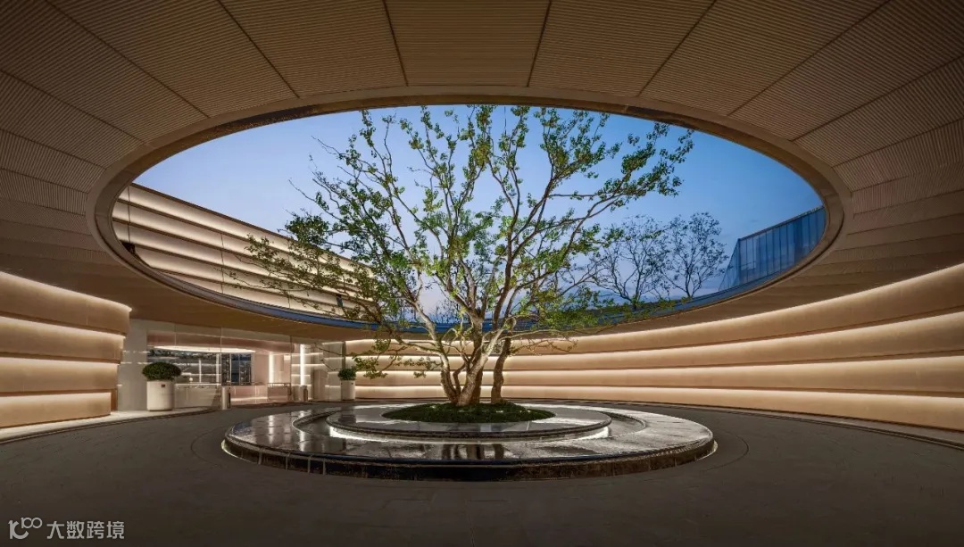 除了地上归家大堂外,依据车行归家的生活习惯,增设奢阔穹顶车马厅,双动线礼序;虽是地下空间,但处处借景自然,光影流转,皆是东方园林的当代转译。