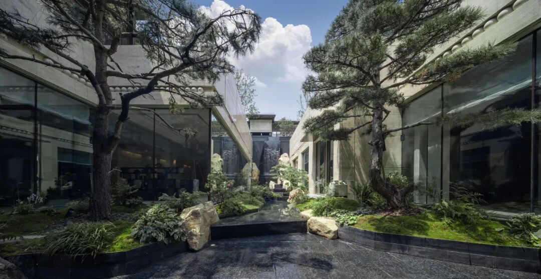 太行金石叠山理水,潘多拉奢石铺陈归家甬道,黑松、枫林掩映曲径,方寸间凝练东方园林的筋骨与气韵。