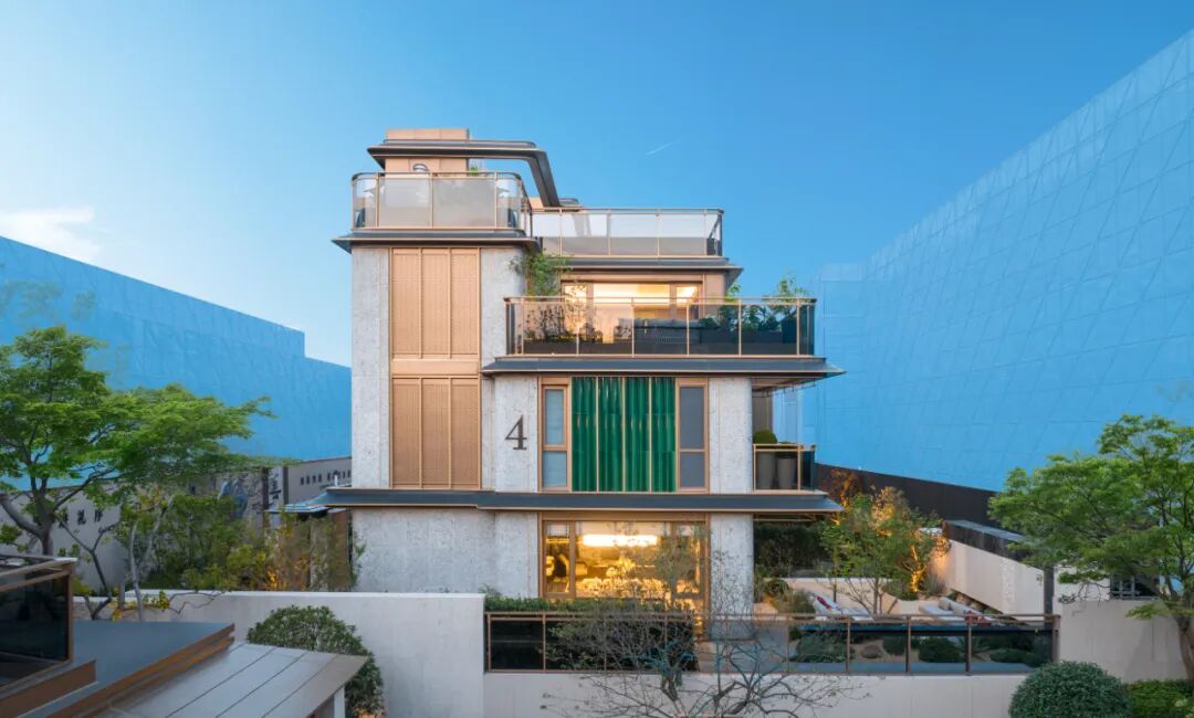 钱江新城二期,风起潮涌处,一座院落,以约1.1容积率丈量土地的矜贵,用三层真排屋定义生活的尺度。